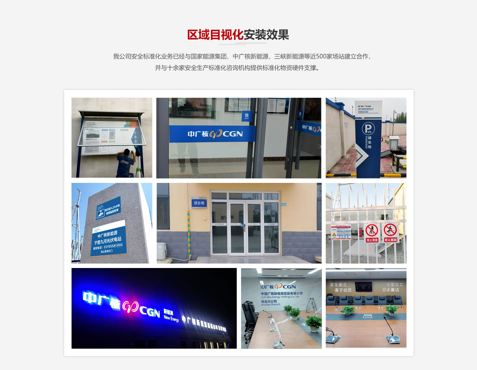 我公司安全標(biāo)準(zhǔn)化業(yè)務(wù)已經(jīng)與國(guó)家能源集團(tuán)、中廣核新能源、三峽新能源等近500家場(chǎng)站建立合作,并與十余家安全生產(chǎn)標(biāo)準(zhǔn)化咨詢機(jī)構(gòu)提供標(biāo)準(zhǔn)化物資硬件支撐。